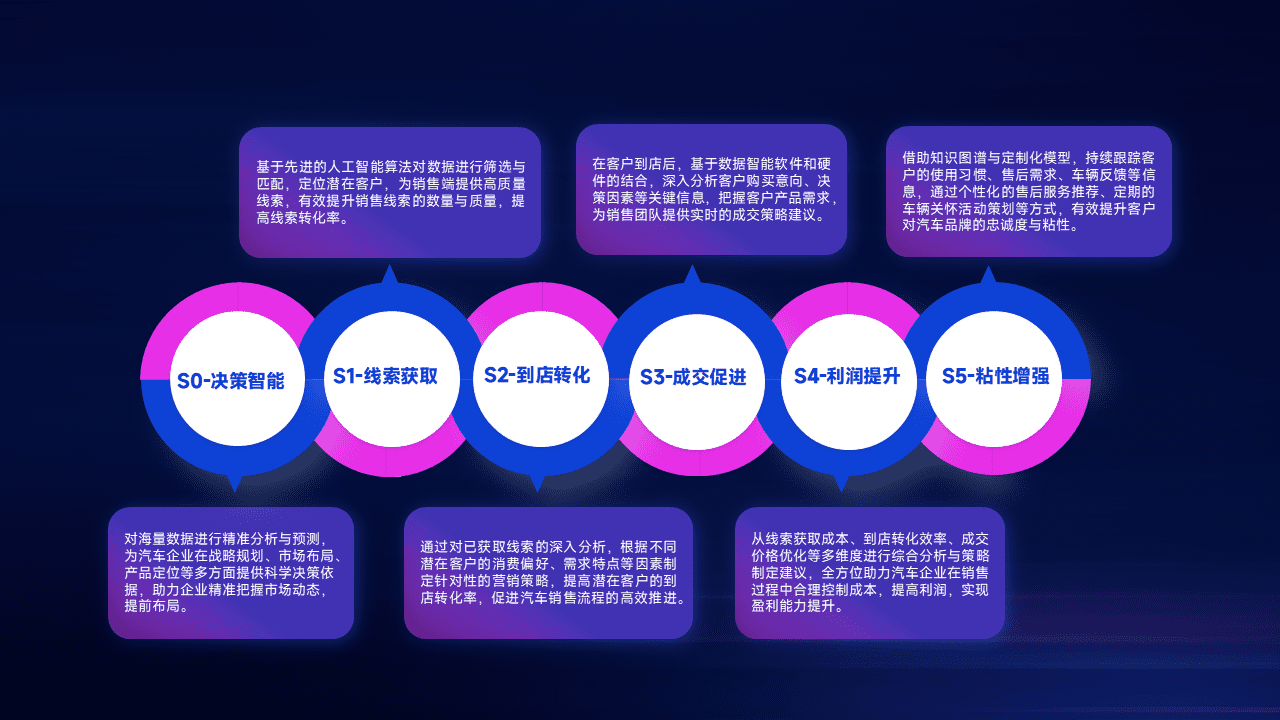 通过拓宽潜在客户来源、、、优化线索分配并提高到店转化率,,,,以增强销售效率。。同时,,,利用线索数据不断优化分析模型,,有效提升转化率,,,扩大营销影响力。。